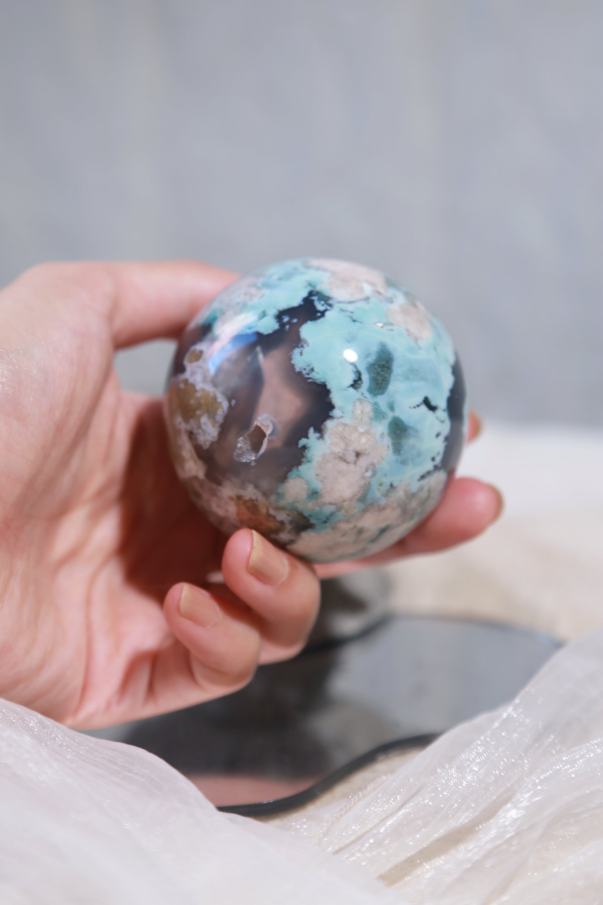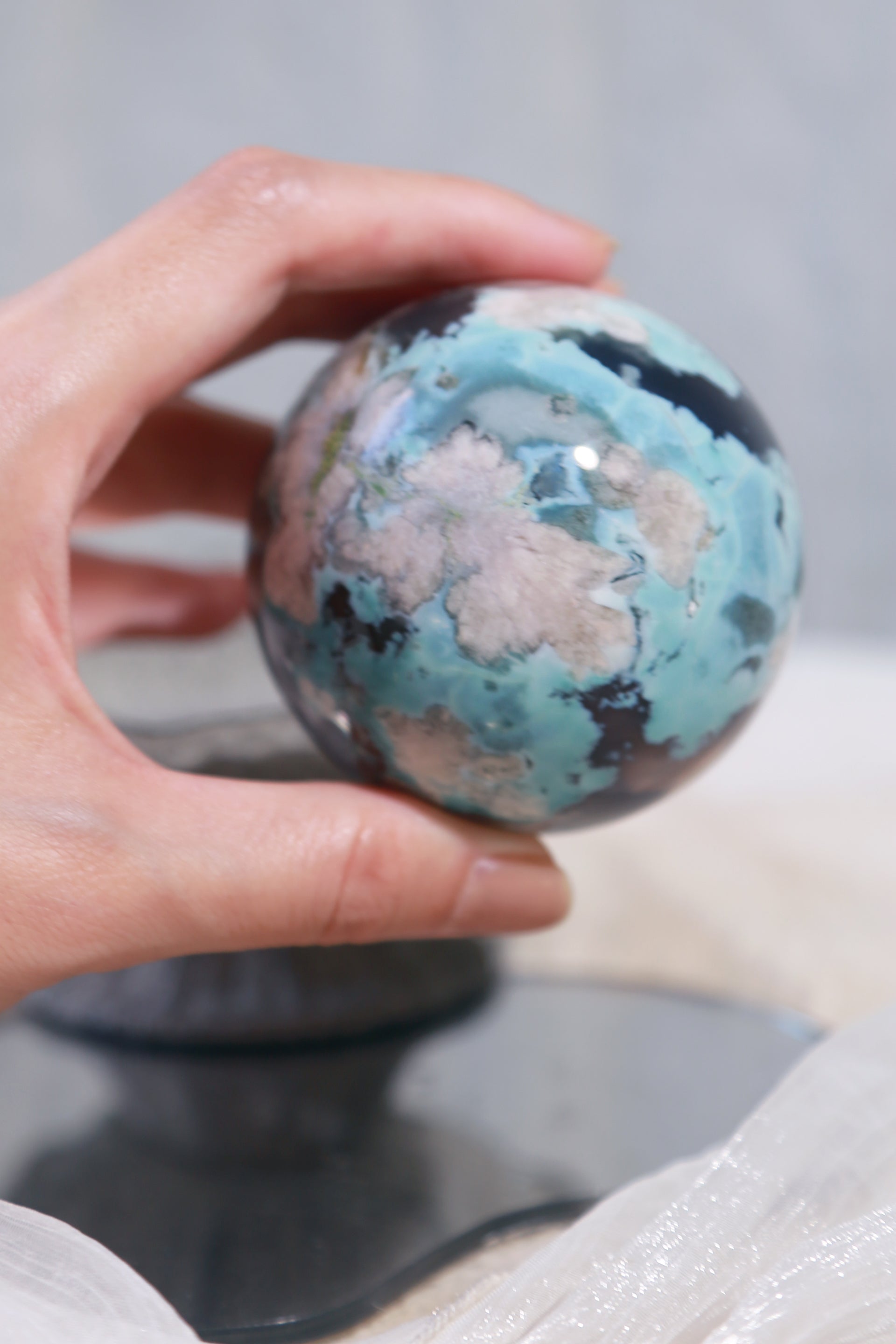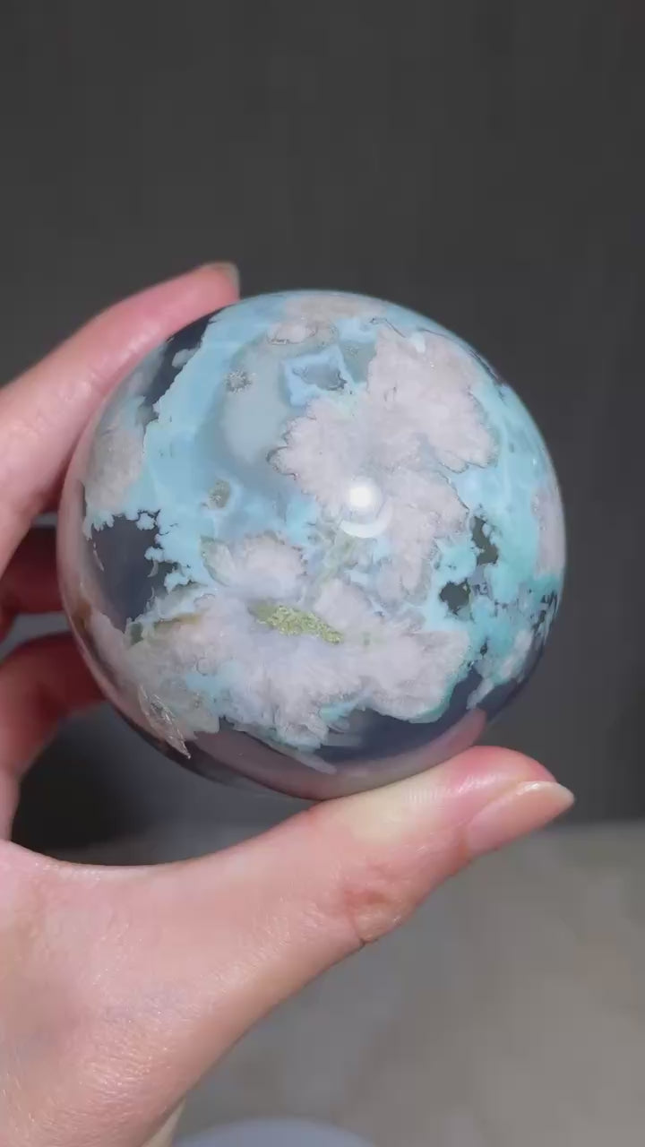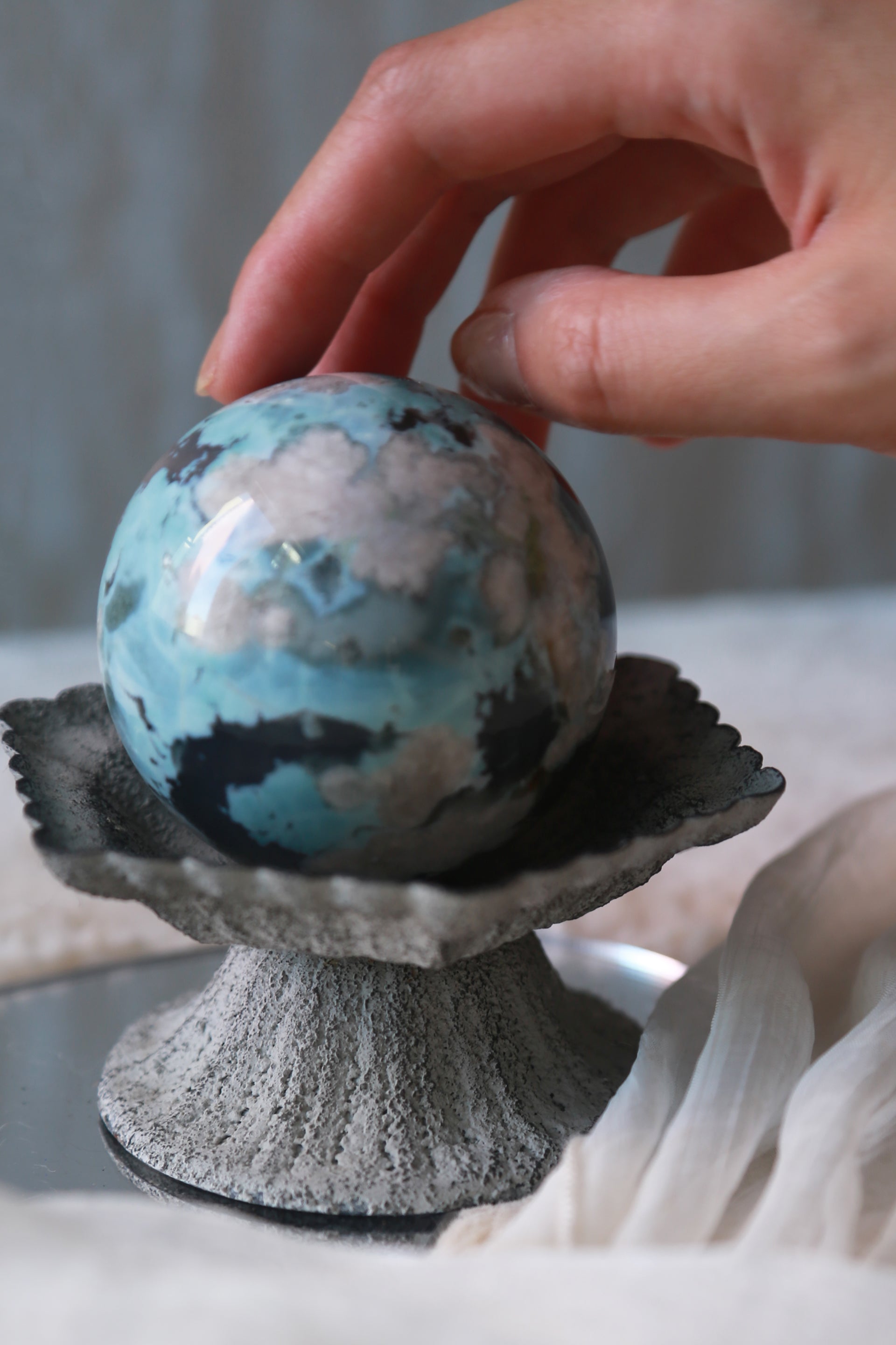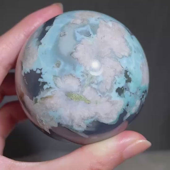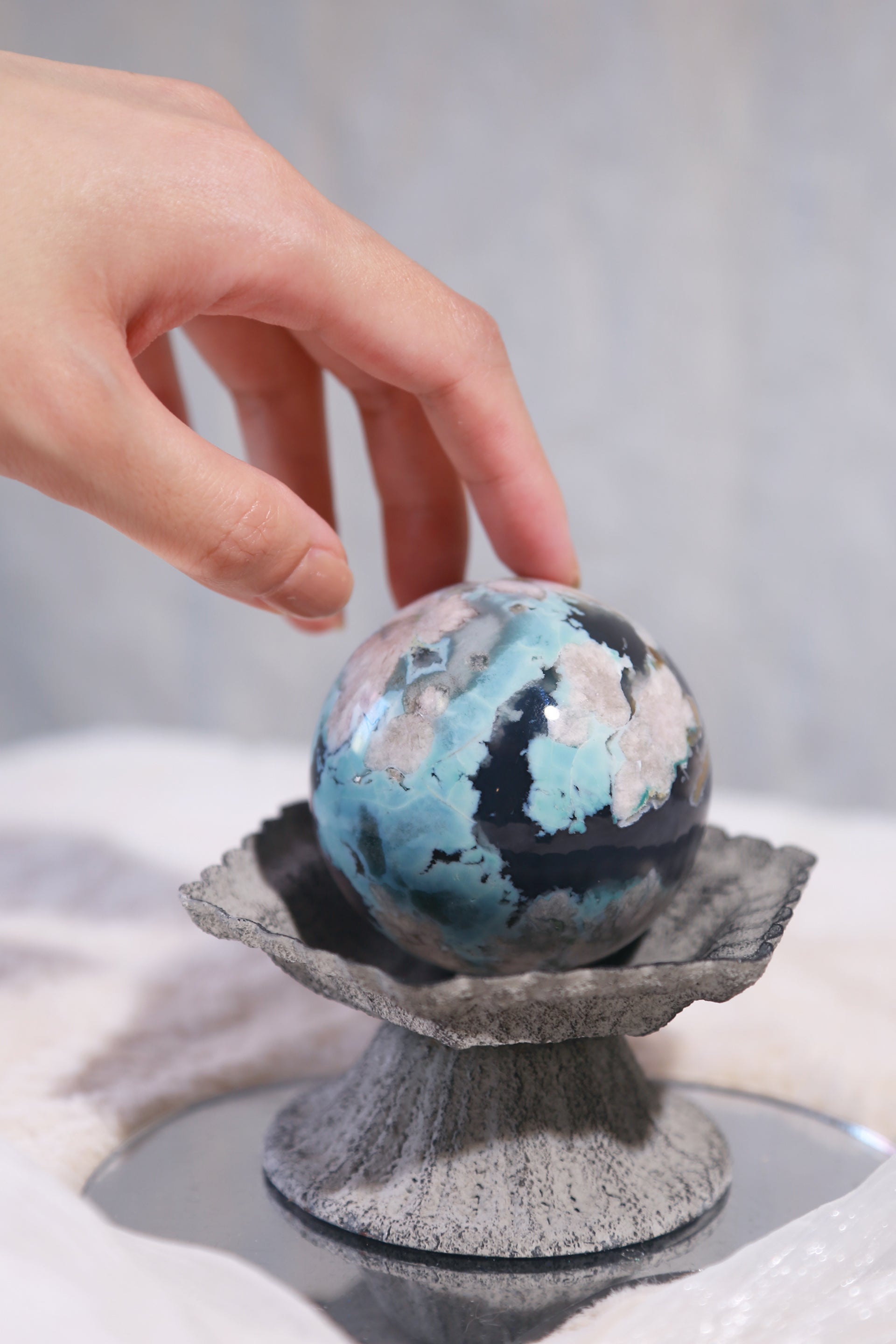 RARE Blue Flower Agate in Navy Blue Chalcedony Sphere