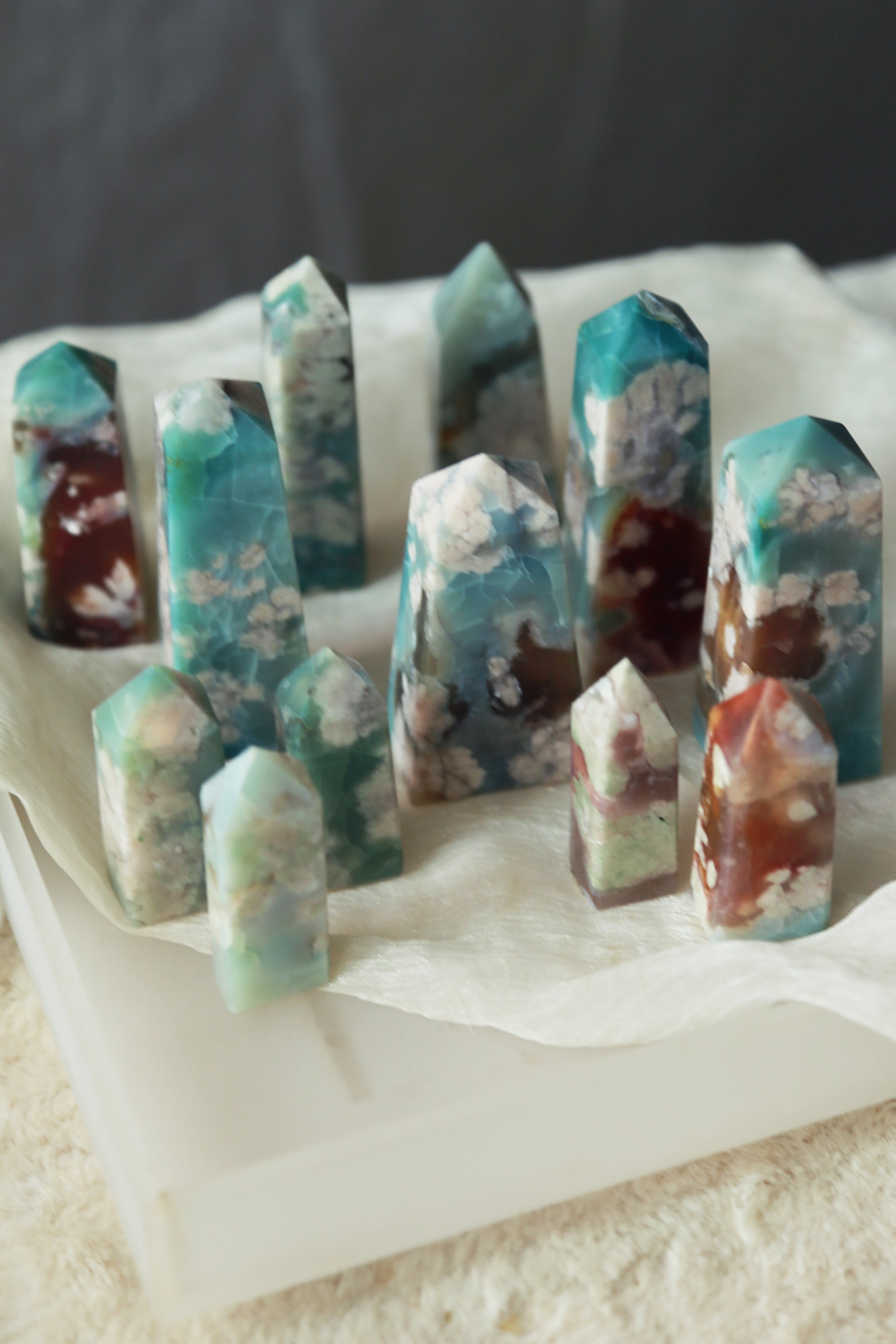 Cherry Blossom Flower Agate helps stabilize and ground you, bringing a sense of immense peace and enabling you to allow Universal forces to do their thing. This stone will help clear your mind and energy, improve concentration, focus and heal inner tension. Calm your soul and feel trust in the unfolding of things.