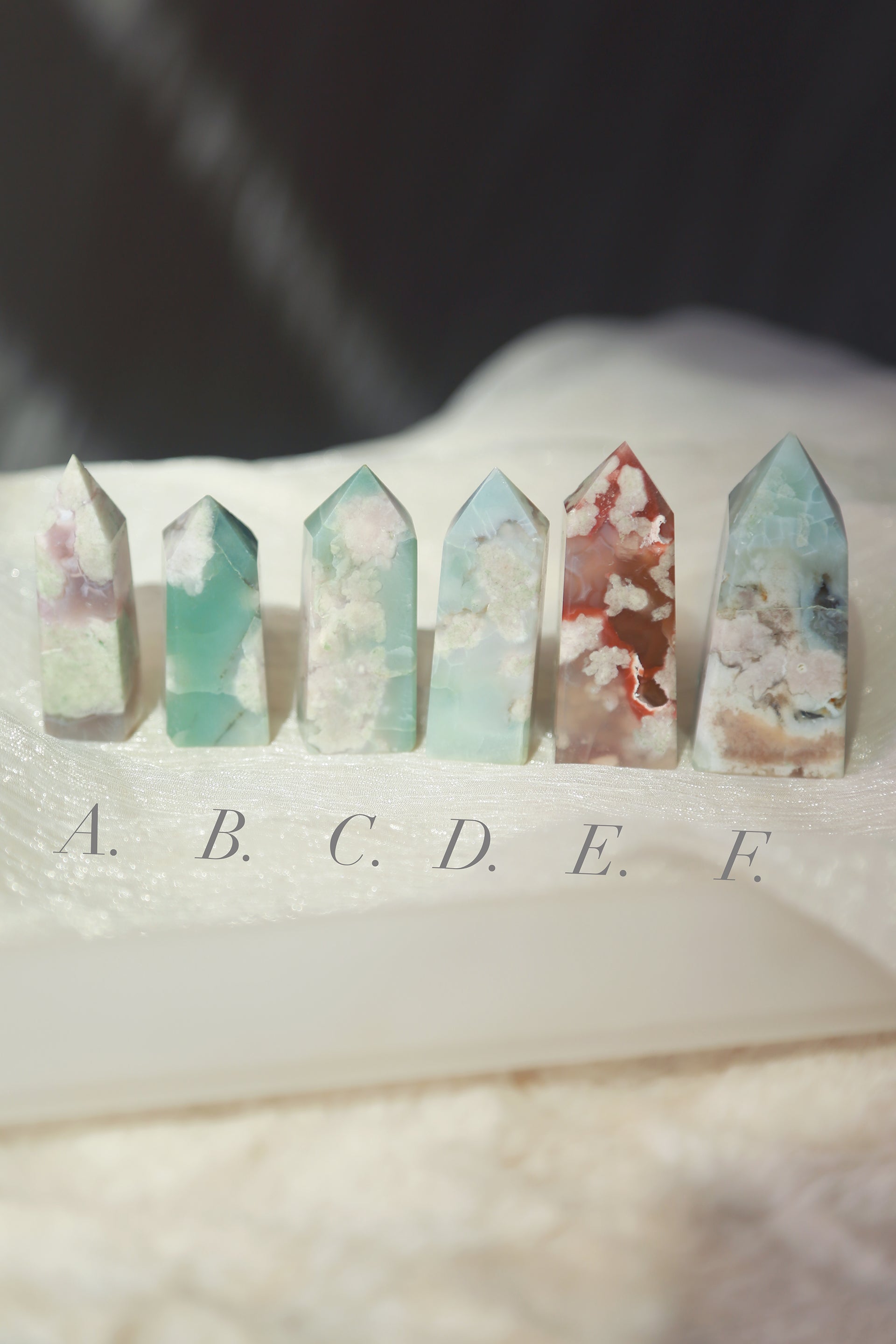 Flower agate (Cherry Blossom Agate) has the Heart-focus of pink chalcedony, but its energy is punchier, and it effects all chakras to some extent, clearing discomfort and blockages.Its gorgeous pink pebbles with nature's art inscribed on their glossy surfaces, these flower agate crystals have beautiful blossoming flower-shaped markings across their bodies, created by the chalcedony growth within. Be transported and supported by cherry blossom agate. This is the stone for blossoming and becoming. Cherry Blossom Agate can be described as an energy that helps in the “reblooming” of the enjoyment of being alive after a long, perhaps painful, and exhausting movement through more dense and difficult life challenges.