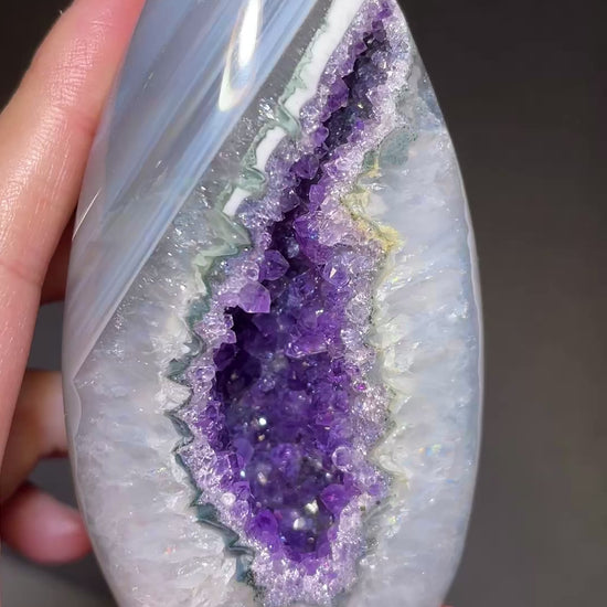 Druzy Amethyst in Blue Banded Agate Flame Freeform