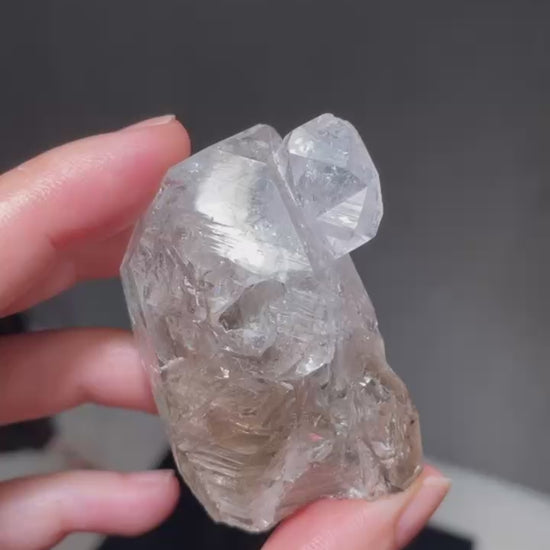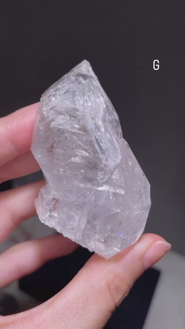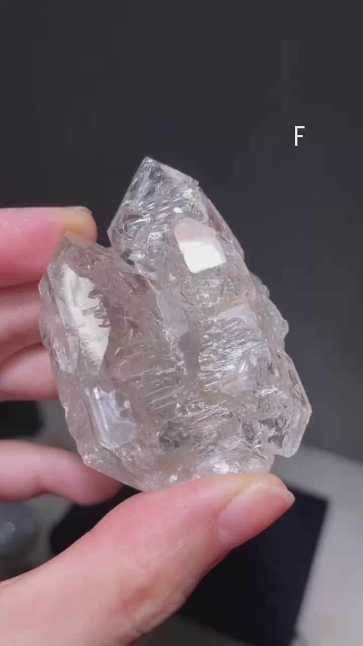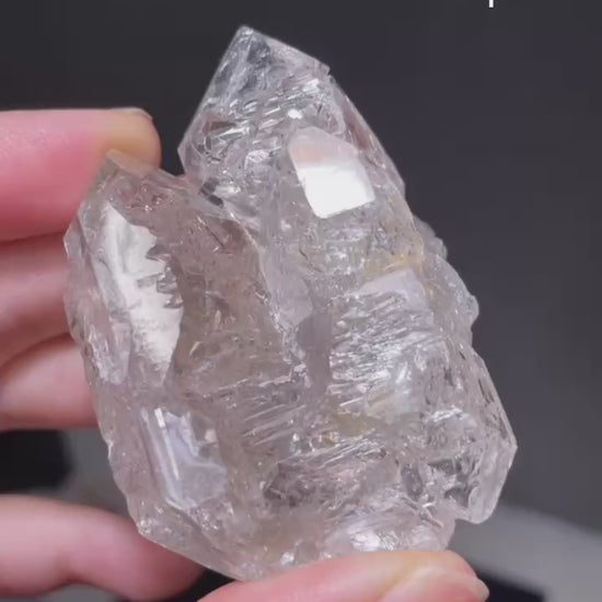 Fenster Elestial or Window Quartz is the name given to a natural Quartz point that has natural etched triangle formations “windows” within the planes of the crystal. It gets its name the German word “Fenster”, meaning window. Its structure has many windows and chambers within the crystal. Elestial quartz is also referred to with another particular growth pattern of quartz. It is also known as Alligator Quartz, Skeletal Quartz, or Cathedral Quartz. It is characterized by having multiple terminations covering the face of a crystal, usually all growing in the same direction. They will also form in layers and are found with distinctive etched patterns.