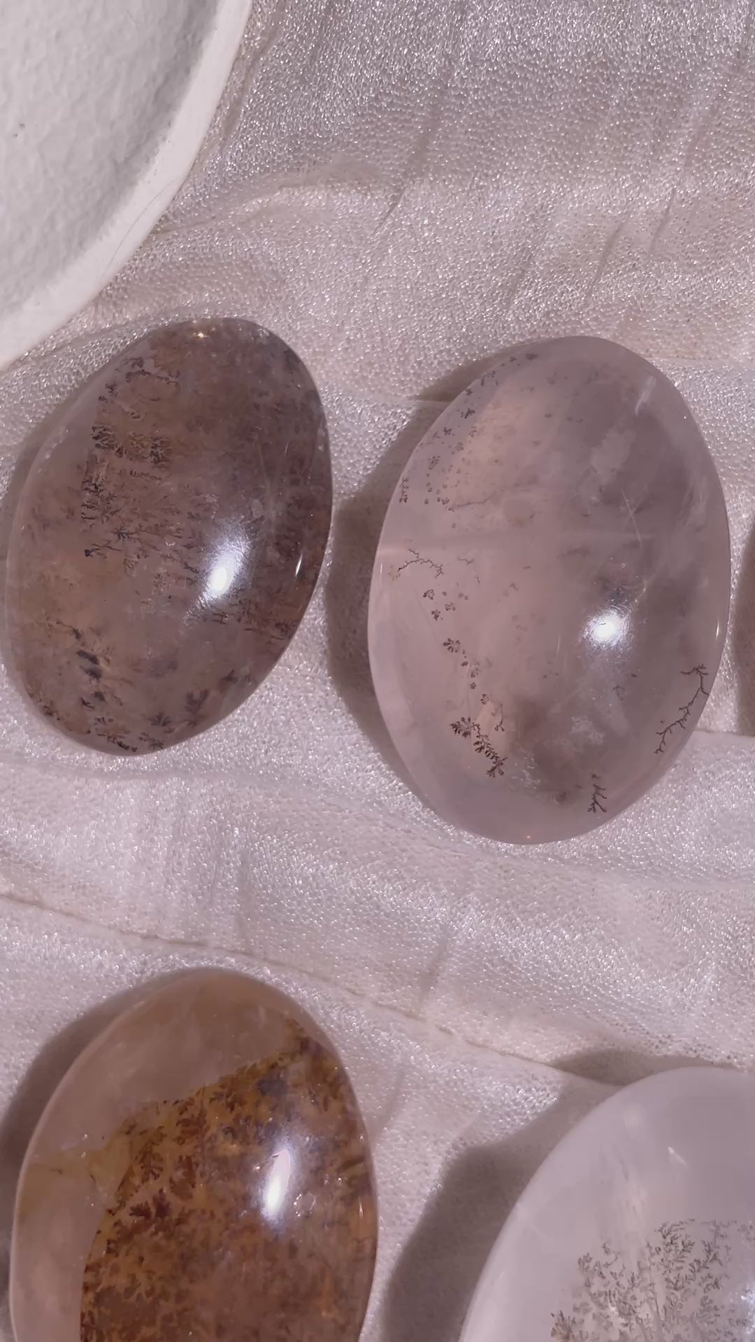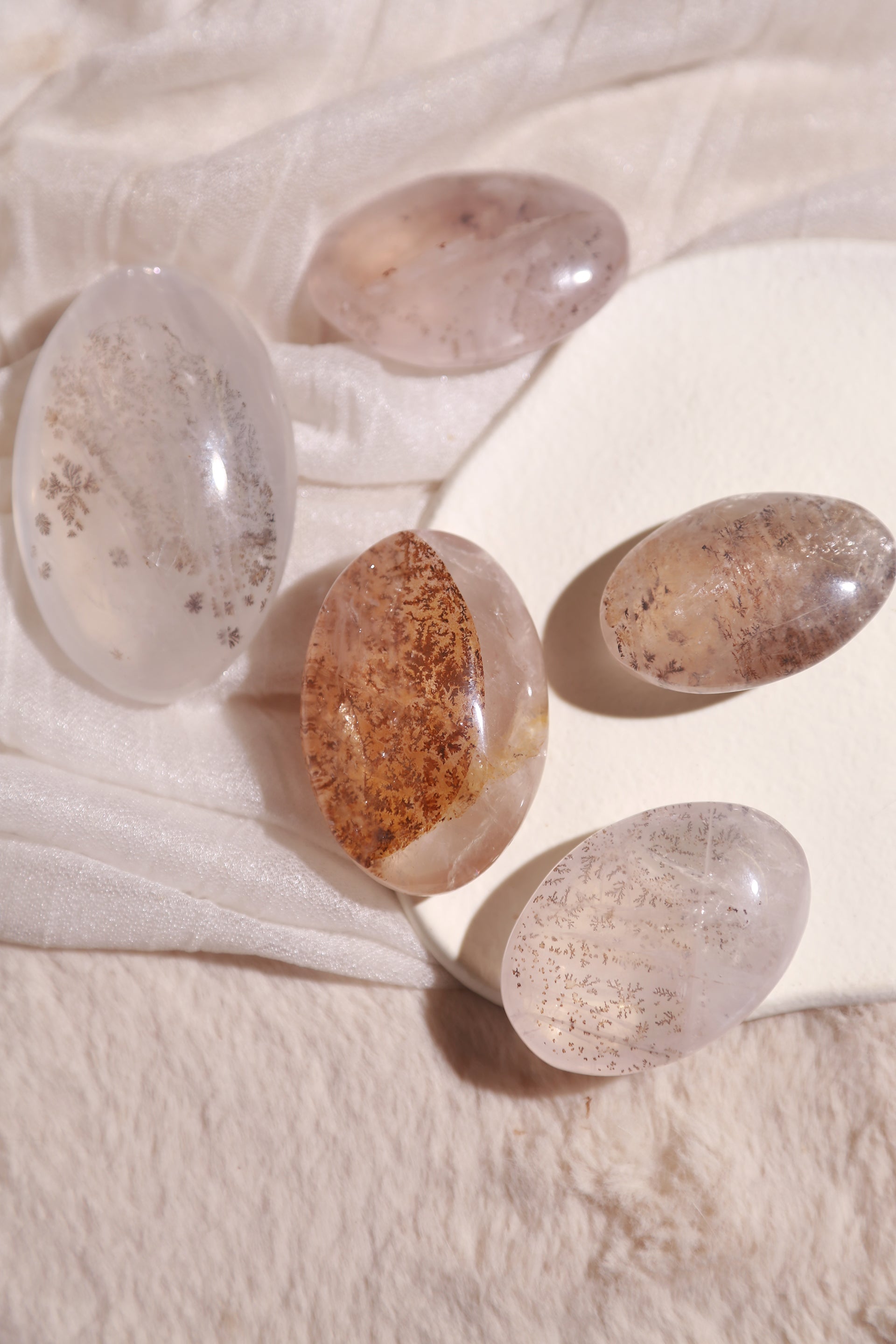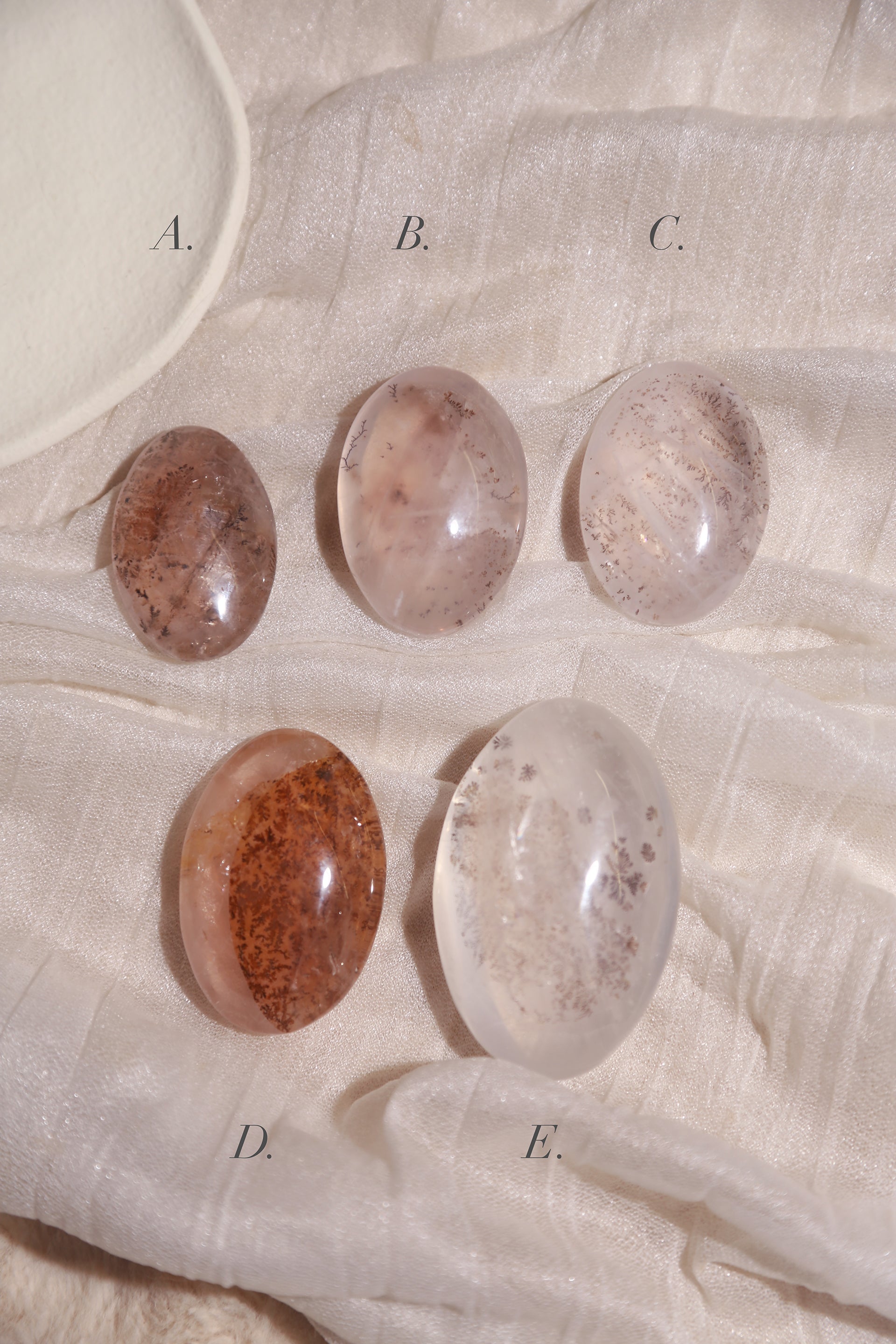 This selection includes Dendritic Quartz, Rose Quartz and Girasol, some with starlight, and some have blue glow.