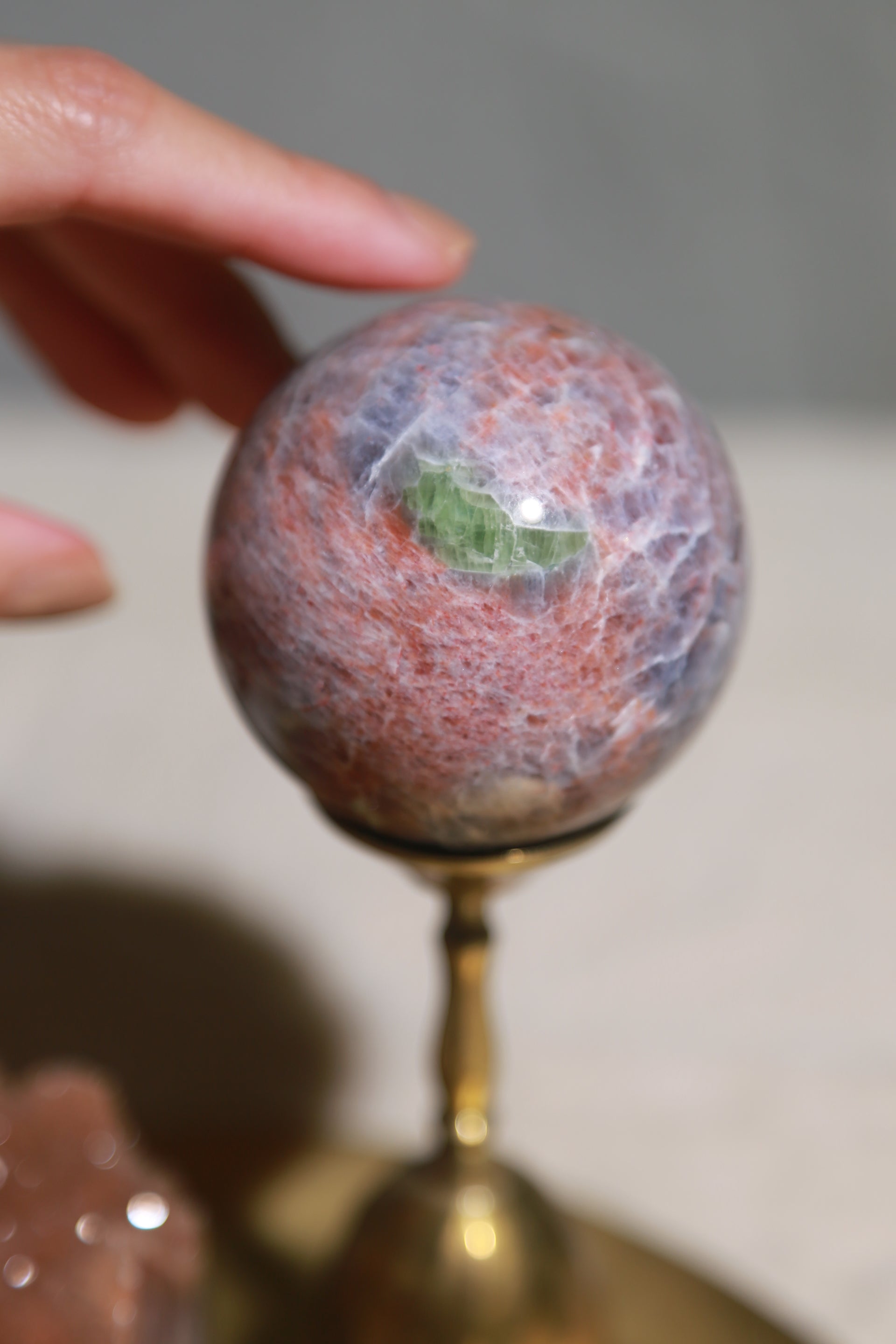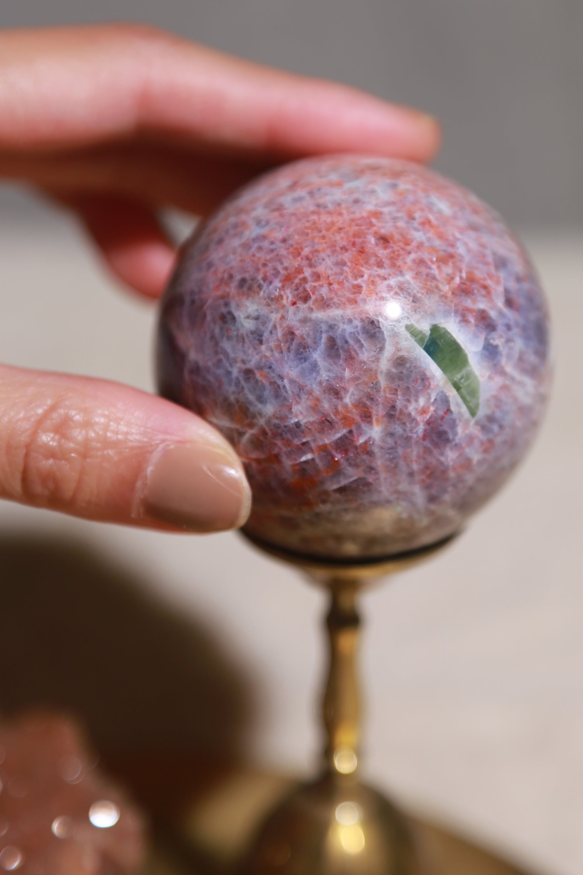 High Quality Iolite Sunstone Sphere with Green Tourmaline