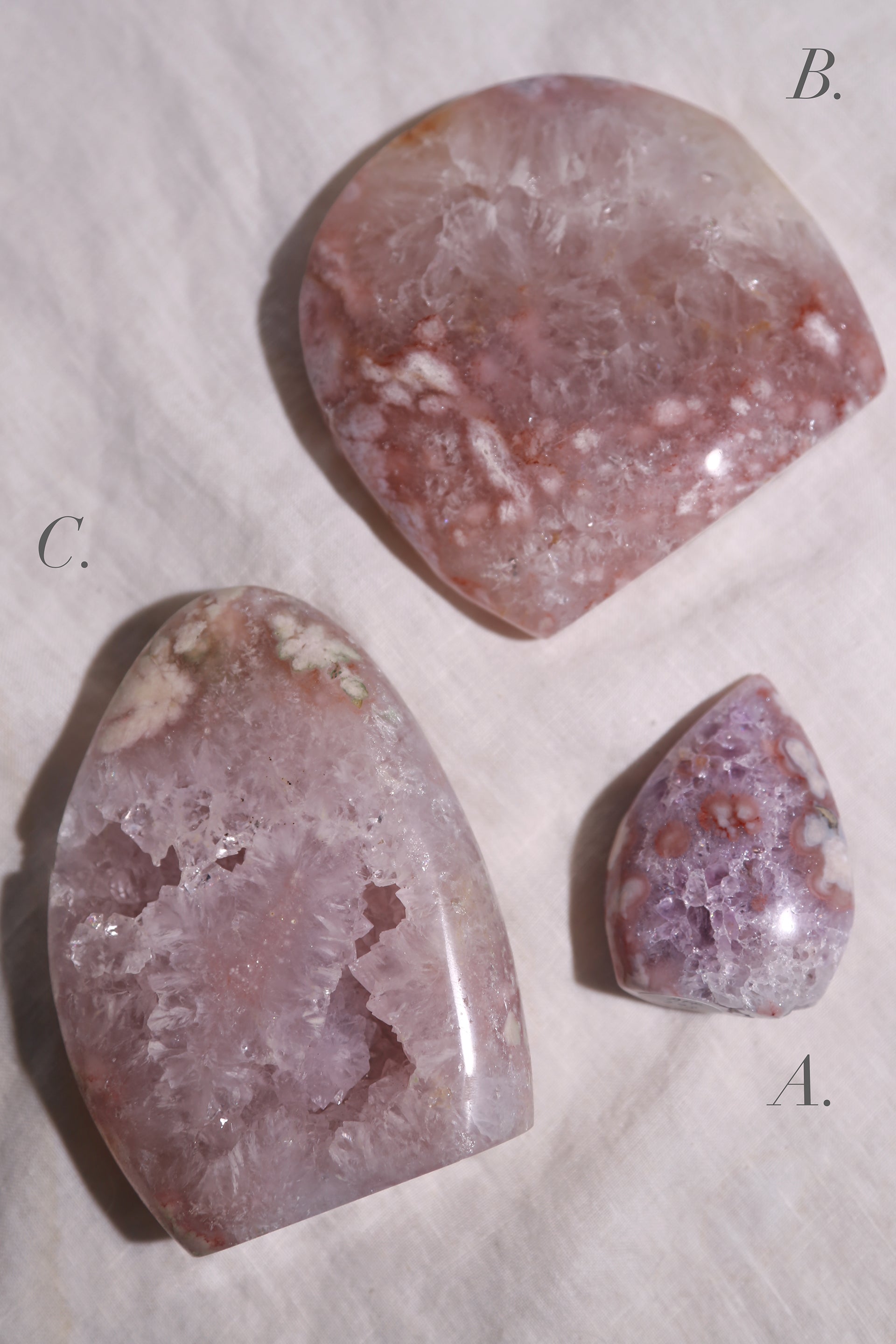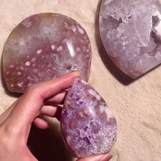 Flower agate is stone has a gentle, and nourishing energy resembling a field of flowers. The circles and dots represent seeds and the floral plumes represent the blossom, reminding us that we start out as seeds, then blossom and grow.