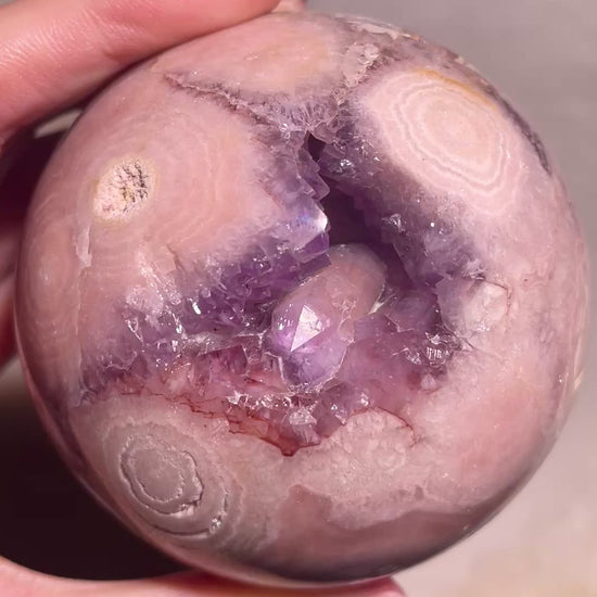 Purple Druzy Pink Flower Agate Sphere